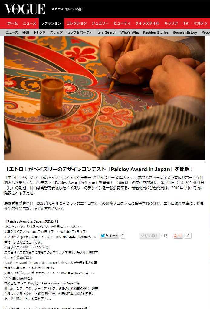 「エトロ」がペイズリーのデザインコンテスト「Paisley Award in Japan」を開催するんだとか。